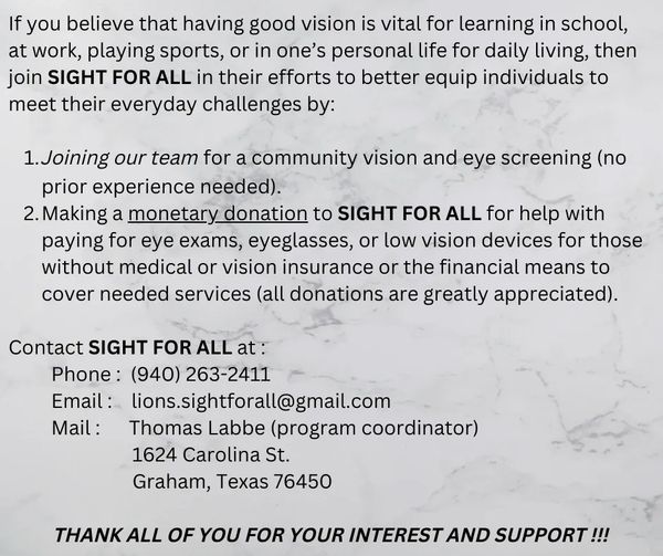 Do you have old glasses that you no longer wear but don't want to throw them away? The Lions Club collects used eyeglasses and gives them to groups that go on mission trips in areas with limited resources. For more information and to find a donation site near you, click here.